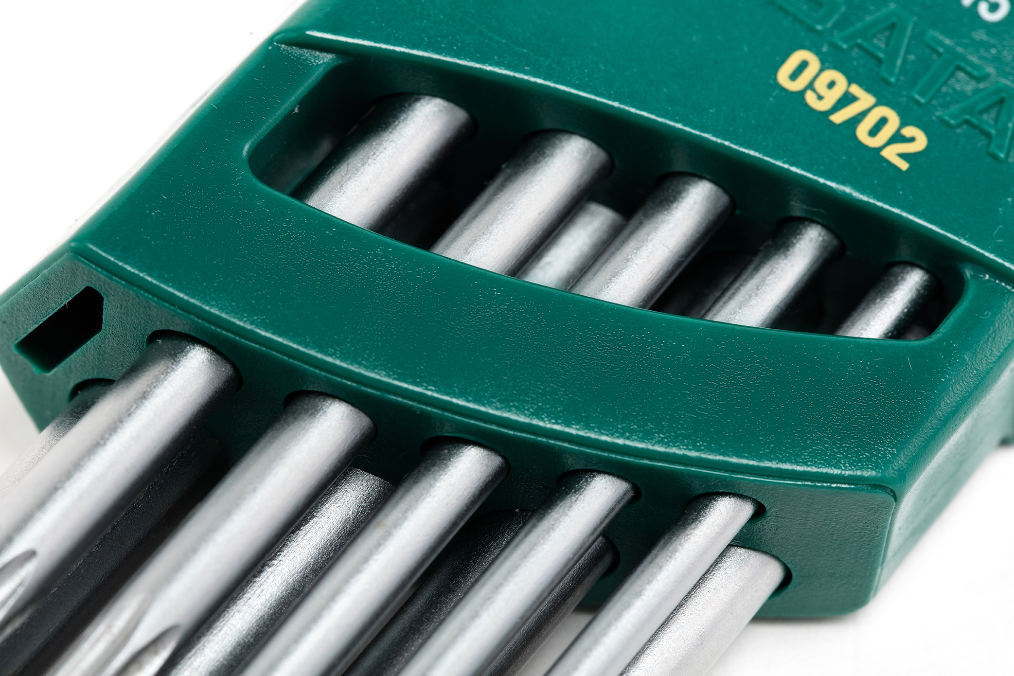 - Thông tin dập chìm: Trên thân mỗi cây lục giác đều dập rõ mã size (ví dụ: T40) và thương hiệu SATA cực kỳ tinh xảo.