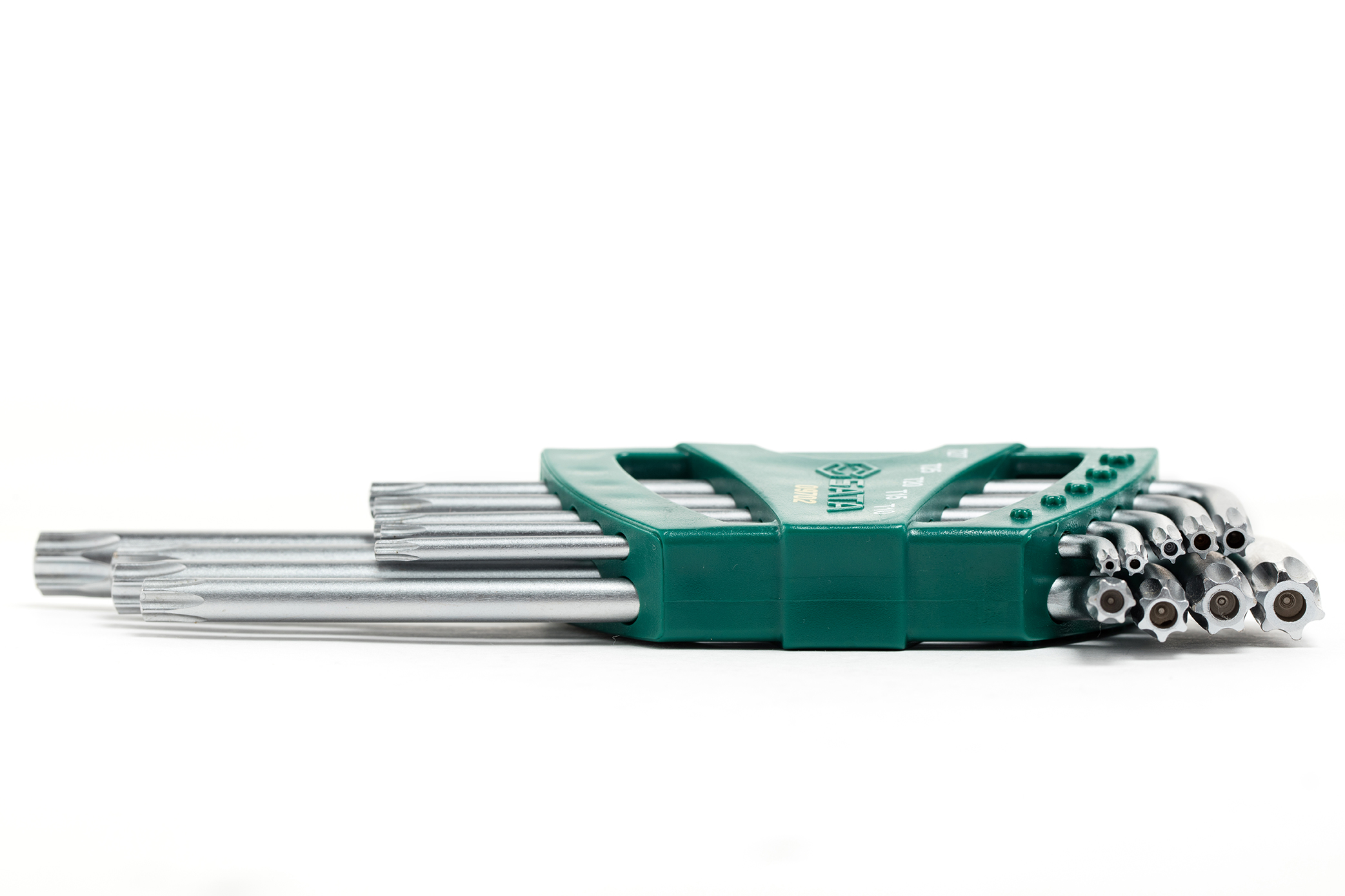 - Thép Cr-V nhiệt luyện chuyên sâu: Toàn bộ 9 cây trong bộ SATA 09702 được rèn từ thép Chrome Vanadium. Loại vật liệu này mang lại độ cứng bề mặt cực cao để chống mài mòn mũi Torx, đồng thời có độ dẻo dai lõi để không bị gãy khi vặn ở mô-men xoắn đỉnh.