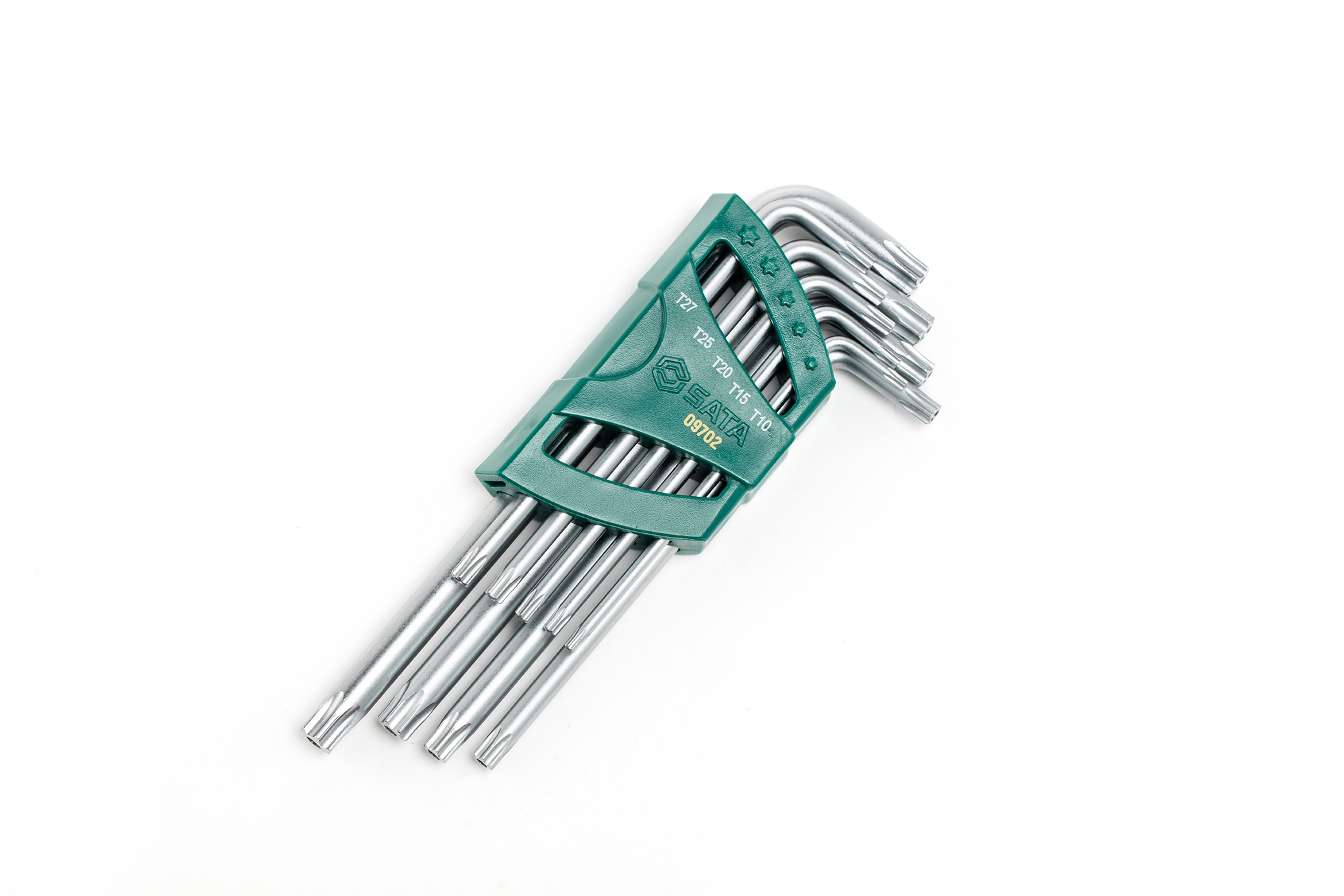 Bộ lục giác sao (Torx Key Set) SATA 09702 là bộ dụng cụ gồm 9 chi tiết vặn đầu hình sao 6 cánh (Torx). Đây là dòng Loại Dài (Long Arm), được thiết kế để truyền tải mô-men xoắn lớn hơn và tiếp cận các con ốc nằm sâu trong các chi tiết máy phức tạp mà các bộ lục giác ngắn không thể chạm tới.