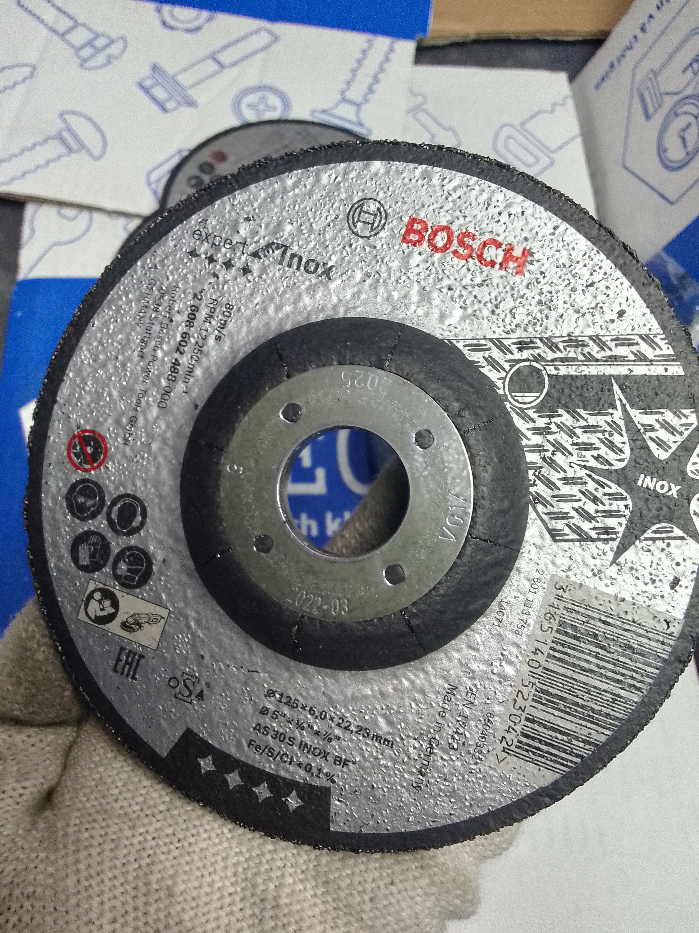 Đá mài inox 125×6.0x22.2mm Bosch 2608602488 là sản phẩm của thương hiệu Bosch có xuất xứ từ Đức. Đường kính 125 mm (125 li), độ dày 6 mm (6 li). Đá mài Bosch được ứng cho việc mài nhẵn, đánh bóng, định hình bề mặt sản phẩm, loại bỏ các vết bẩn. Đá mài được sử dụng nhiều trong lĩnh vực gia công cơ khi, xây dựng, sản xuất chế tạo máy móc. Việc sử dụng đá mài giúp gia tăng năng xuất lao động, các sản phẩm tạo ra có độ hoàn hảo, tính tế, thiết kế đẹp và đặc biệt với các chi tiết quan trọng có sự chính xác gần như tuyệt đối.
