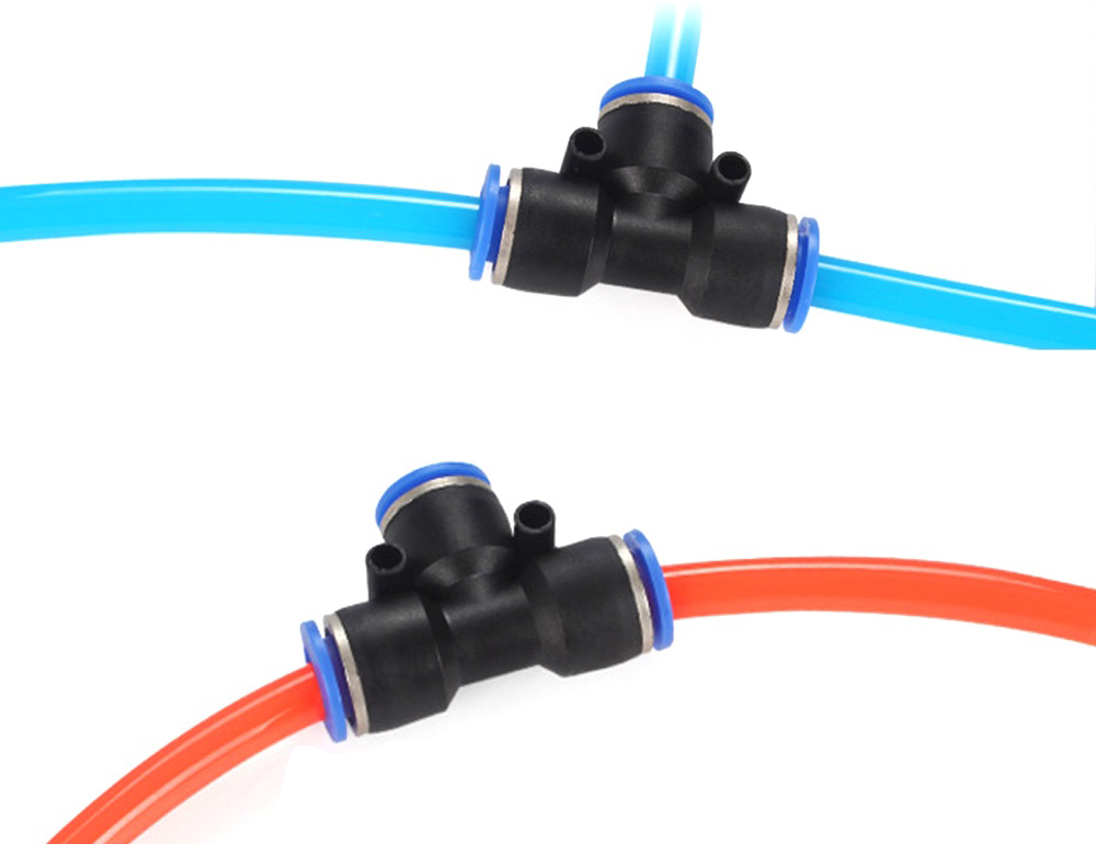 - Thân nhựa (Body): Làm từ nhựa kỹ thuật cao cấp màu đen, chịu va đập và áp lực khí nén tốt. Thiết kế chữ T giúp phân chia dòng khí từ một đường ống lớn sang nhỏ hoặc ngược lại.