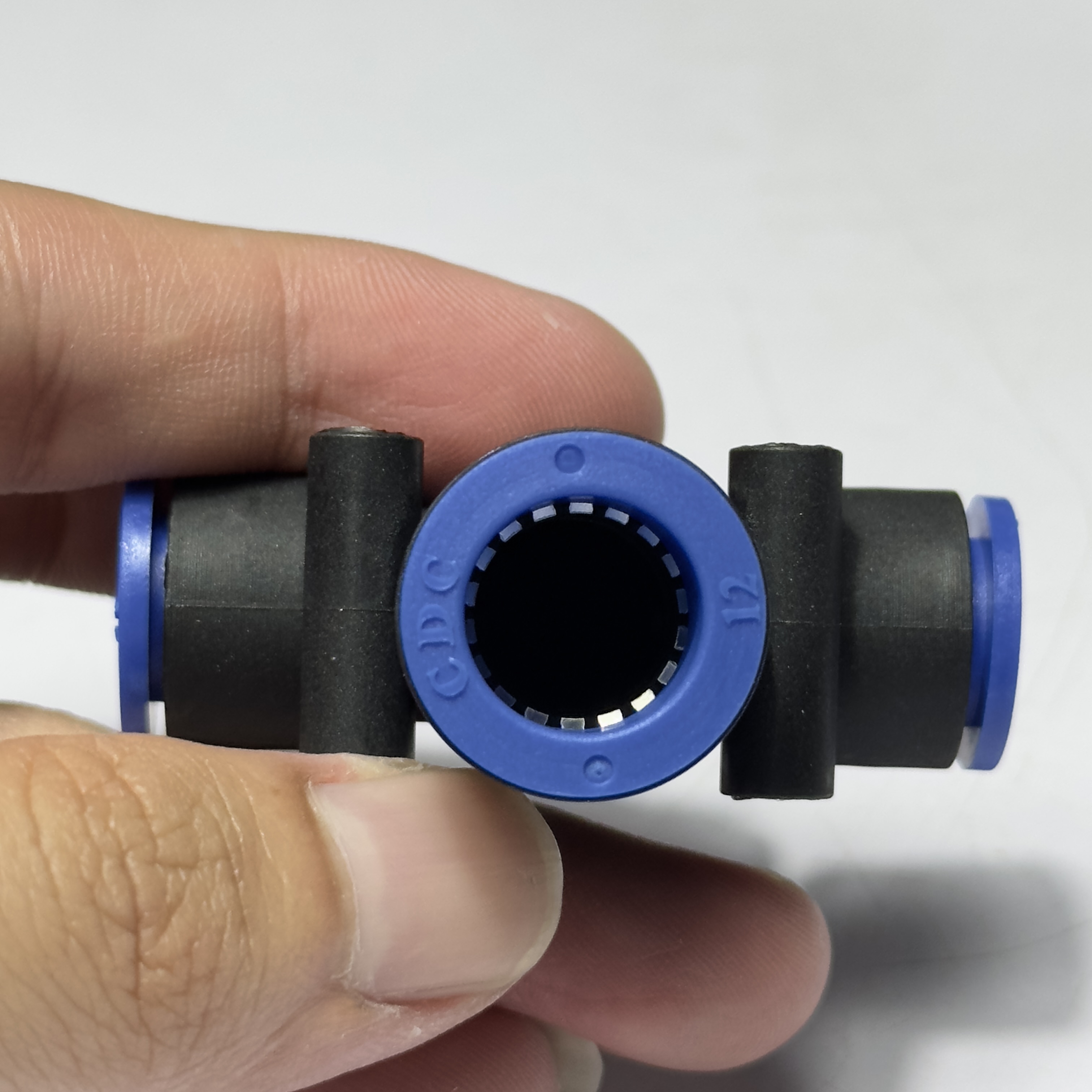 Thông thường, thiết kế chữ T giảm sẽ có 2 đầu thẳng hàng cùng kích thước và 1 đầu nhánh vuông góc khác kích thước. Bạn cần xem kỹ bản vẽ kỹ thuật hoặc liên hệ tư vấn để biết chính xác đầu nào là 10mm, đầu nào là 12mm phù hợp với thiết kế mạch khí của mình.