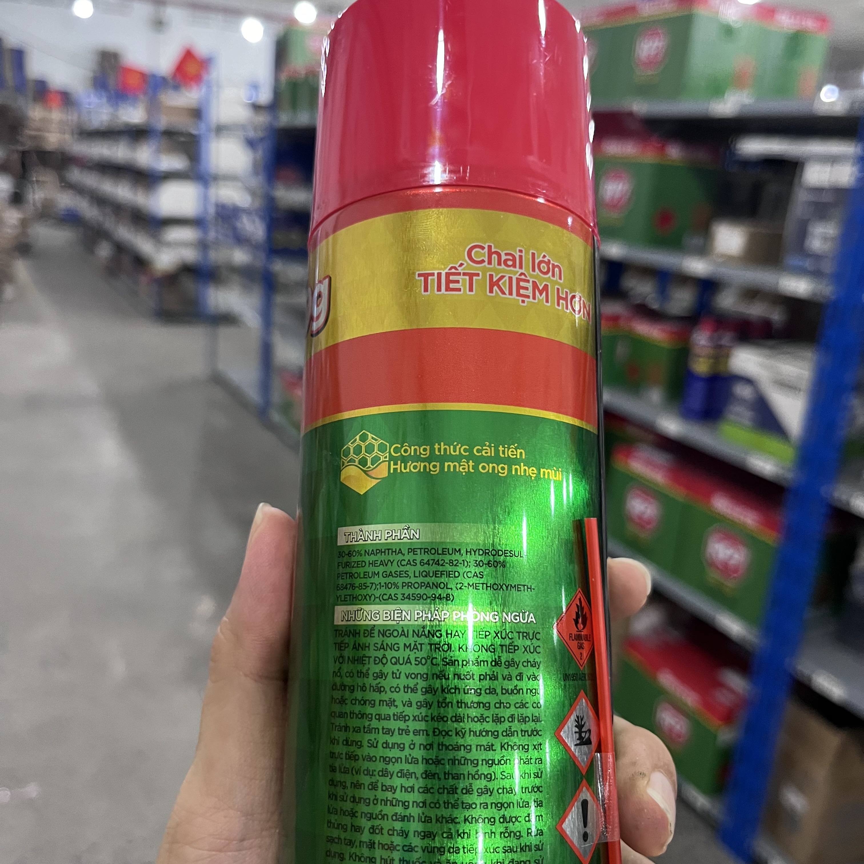 | Thành phần | White spirit (30-60%), Butane/Propane (khí đẩy) |
