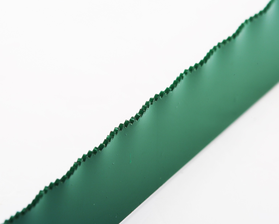 - Thân đàn hồi (Spring Steel): Phần lưng màu xanh lá giữ vai trò như một bộ giảm xóc. Nó triệt tiêu các rung động khi kéo cưa, giúp đường cưa mỏng không bị vẩy, đồng thời ngăn lưỡi gãy gập khi thợ lỡ tay đẩy lệch góc.