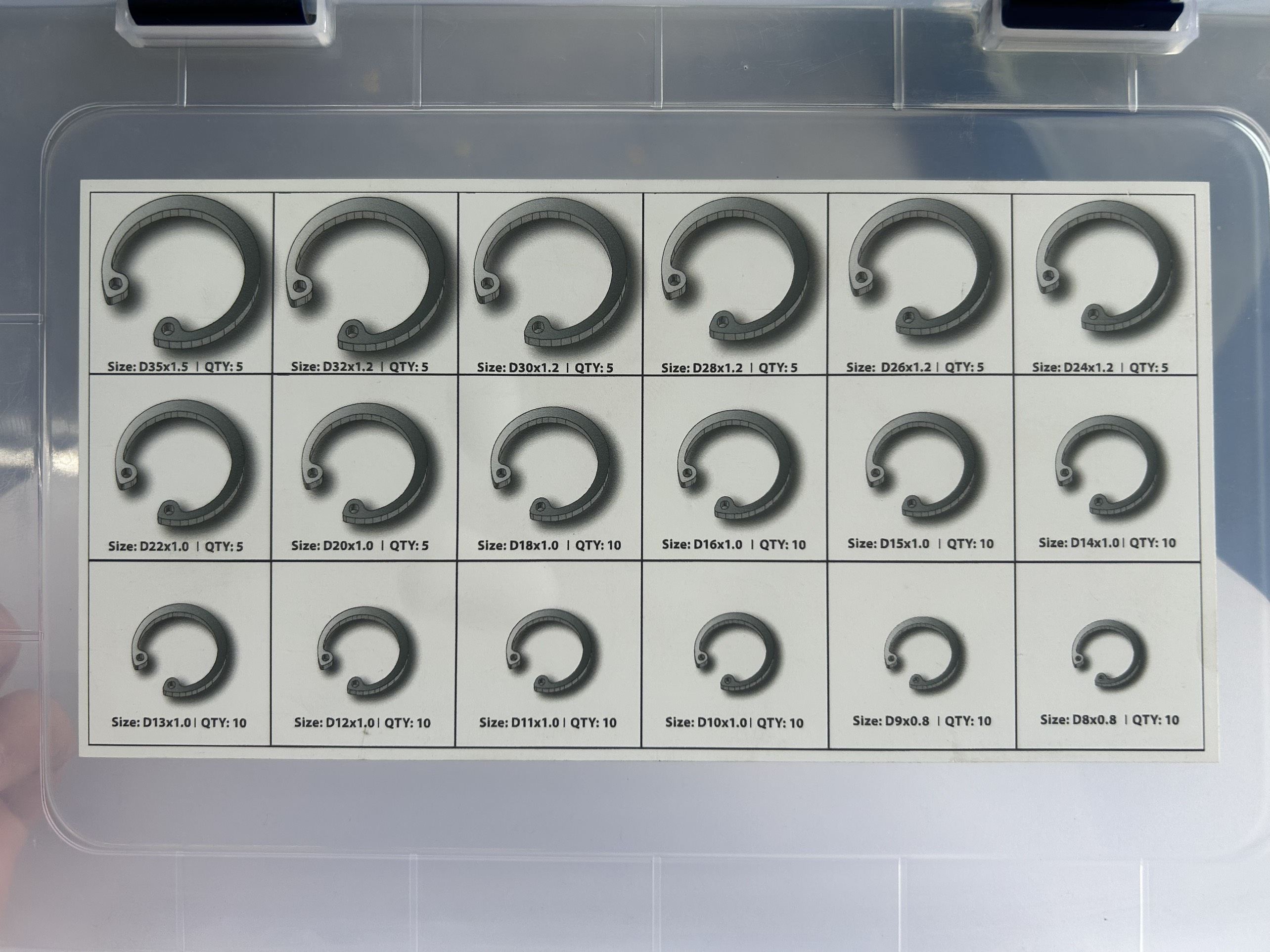 Hộp Vòng Phe Gài Lỗ Inox 420 DIN472 140 Chi Tiết 18 Size Từ D8-D35