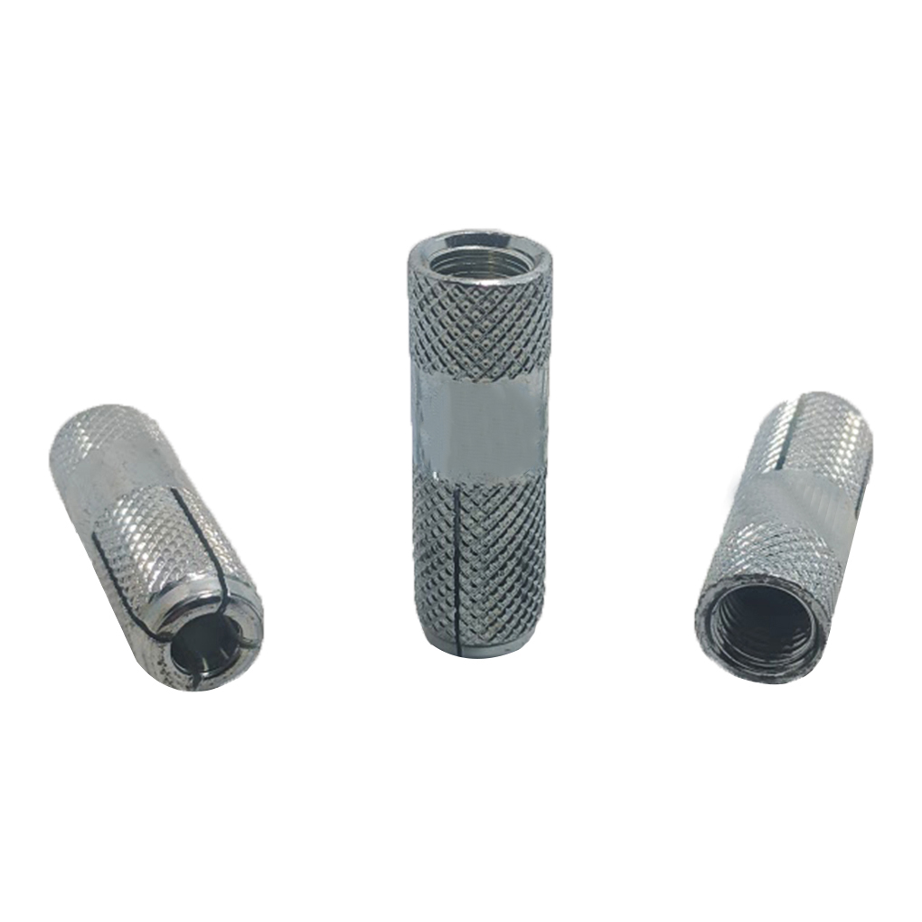 - Phần thân (Sleeve): Là một ống thép hình trụ, một đầu có ren M8 để nối với ty ren, đầu còn lại được xẻ rãnh (thường là 4 rãnh) và có khía nhám bên ngoài để tăng độ bám.