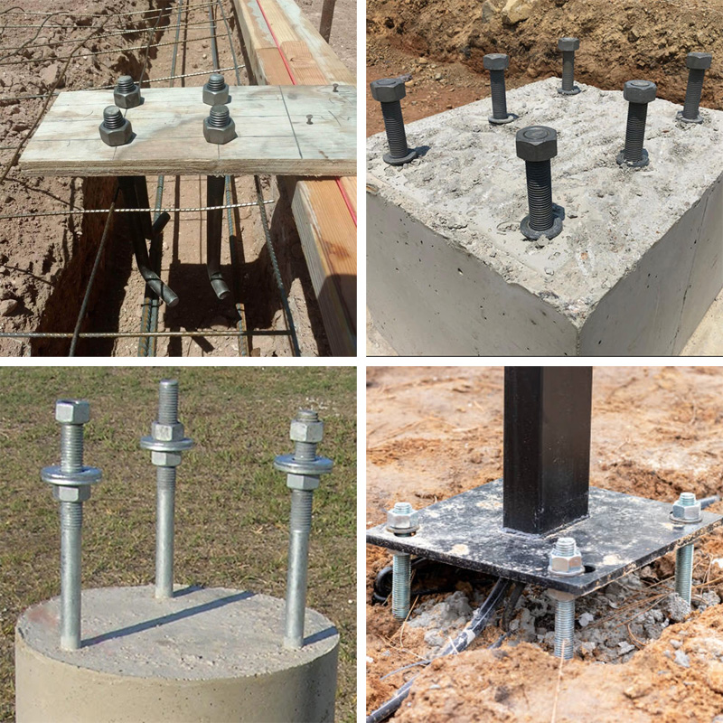 - Kết cấu thép: Liên kết bản mã chân cột thép, dầm thép vào bê tông trong xây dựng nhà xưởng, nhà tiền chế.