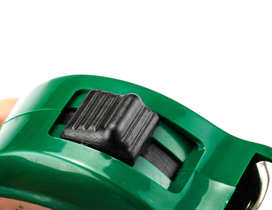 - Lá thước nhám mờ: Bề mặt lá thép 25mm không làm bóng loáng. Nó được phủ một lớp nilon mờ (matte coating). Thiết kế này vừa giúp triệt tiêu hiện tượng phản quang lóa mắt khi đo ngoài trời nắng gắt, vừa tăng cường tuổi thọ chống trầy xước lên gấp nhiều lần.